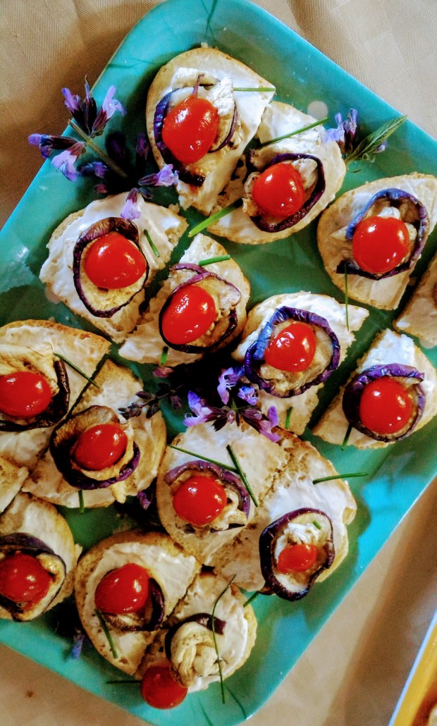 Facili, veloci e buone le tartine col pane a cassetta fatto in casa. È un pane con burro di qualità. Si mantiene diversi giorni senza ammuffire né seccarsi. Buono per la colazione insieme alla marmellata, oppure con salumi, o formaggi. In questo caso, ho lavorato la robiola con erbe aromatiche, l’ho spalmata sul pane, ho grigliato peperoni, zucchine e melanzane, le ho tagliate a filetti ed ho decorato le tartine unendo noccioline e semi vari. Sono ottime come anticipasto o per una merenda all’aria aperta. Buon appetito.