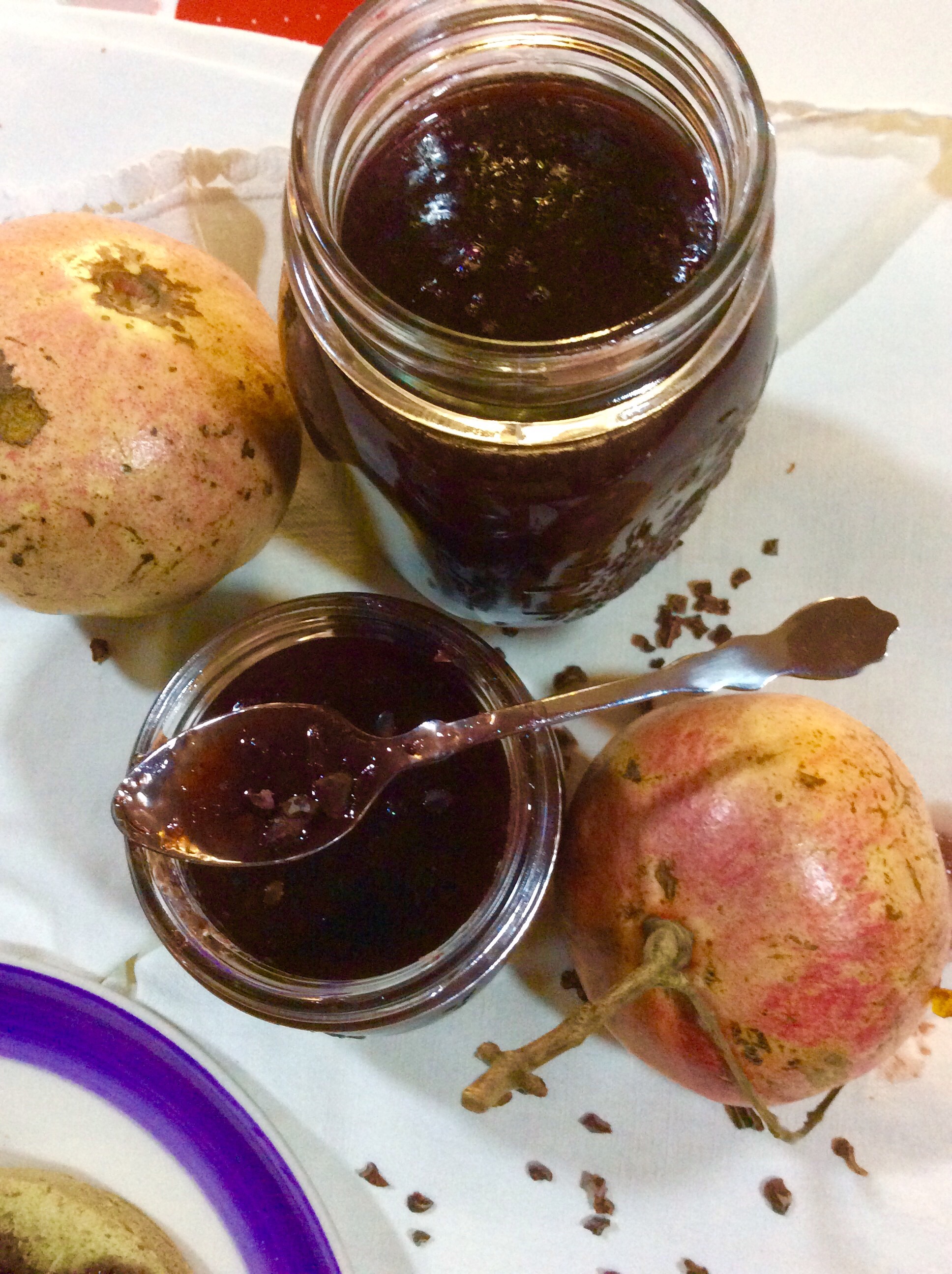 Un chilo e tre grammi di chicchi di melagrana puliti, stando attenti a togliere ogni eventuale pellicina che renderebbe amara la crema. Questa operazione si fa bene dentro una ciotola con l’acqua. Scoliamo bene i chicchi e mettiamoli in una pentola con 200 gr di acqua, uniamo il succo di due limoni, e facciamo scottare fino al primo bollore. Spegniamo il fuoco e lasciamo così per una notte. Il giorno dopo per facilitare l’operazione, prima frulliamo ad immersione poi con un po’ di pazienza, passiamo il tutto col passaverdura, in questo modo non avremo i semini frantumati fra i denti una volta cotta. Poi rimettiamo il tutto nella pentola con 340 gr di zucchero integrale di canna, mescoliamo e lasciamo cuocere le melagrane. Quando comincia a bollire uniamo 6 gr di polvere di agar agar, mescoliamo per far sciogliere bene l’addensante e lasciamo cuocere per altri 20 minuti. La crema finché è calda si presenta liquida, ma una volta fredda risulta come una crema. Possiamo aumentare di un grammo o due di polvere di agar agar, però io, con 6 gr. ho ottenuto una bella crema. Fate voi a vostro piacere. Ora prima di invasare la preparazione uniamo a piacere le fave tostate di cacao. Chiudiamo con i loro coperchi e se vi piace metteteli sotto sopra per il sottovuoto. Io non l’ho fatto, l’ho lasciati freddare coperti da uno spesso canovaccio. Quando la gusterete, una volta aperto il vasetto, mantenetelo in frigo e consumatelo in pochi giorni. Sarà un bel regalo per il prossimo S. Natale.