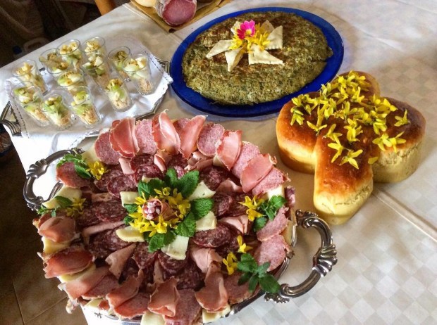 Nella foto c’è la frittata “co’la mintuccia”, ossia la menta romana. Da noi si fa con trenta e più uova perché deve durare tutte le feste pasquali! La ricetta è sul blog basta cercare la frittata co la mintuccia.