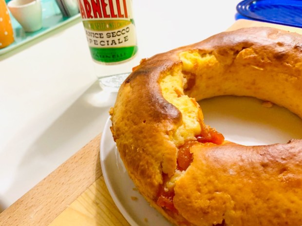 Il ciambellone del tempo della mietitura è pronto e gustiamolo con un goccio di vino cotto di Loro Piceno.