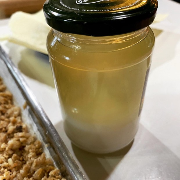 La parte colata è lo strutto, la parte solida restante, sono i ciccioli, “li sgrisciuli”!