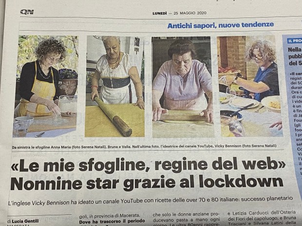 Succede pure che ti fanno fare la “pasta grannies”, senza possedere il prodotto principale, c’è solo l’età e questo attualmente è bastato per preparare un piatto tradizionale, povero e popolare della nostra tradizione marchigiana. Ti cercano, ti trovano e ti vengono a casa a fare la diretta del tuo piatto. Sei molto impacciata ed impaurita, ma è andata lo stesso. Bene o male, non lo sai, però è servito per vederti “descritta è raccontata” in un giornale regionale. È ormai una notizia di qualche mese fa, ma eccola qui!