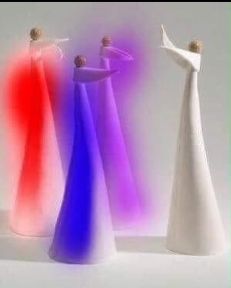 Nella quarta e ultima settimana di Avvento, appare in cielo un angelo con il mantello viola. L’angelo viola passa su tutta la Terra tenendo con il braccio sinistro una cetra d’oro. Manca poco all’arrivo del Signore. Il colore viola è formato dall’unione del blu e del rosso, quindi il suo mantello rappresenta l’amore vero, quello profondo, che nasce quando si sta in silenzio e si ascolta la voce del Signore dentro di noi.