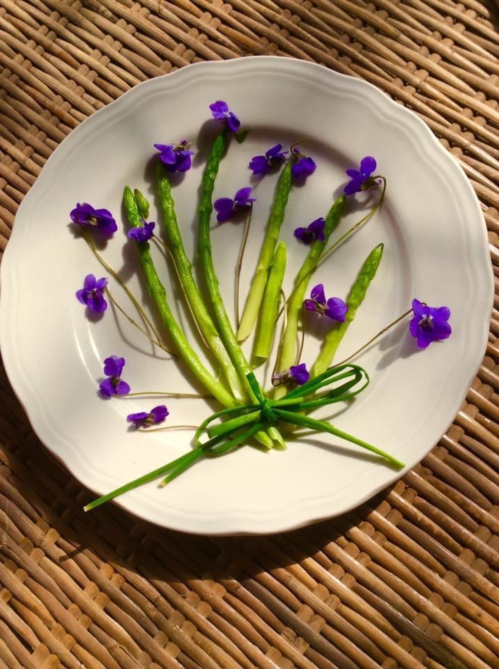 Allora ritorno in casa con un piccolo bottino, prima però approfitto per raccogliere anche un mazzetto di violette che serviranno per profumare e decorare il piatto.