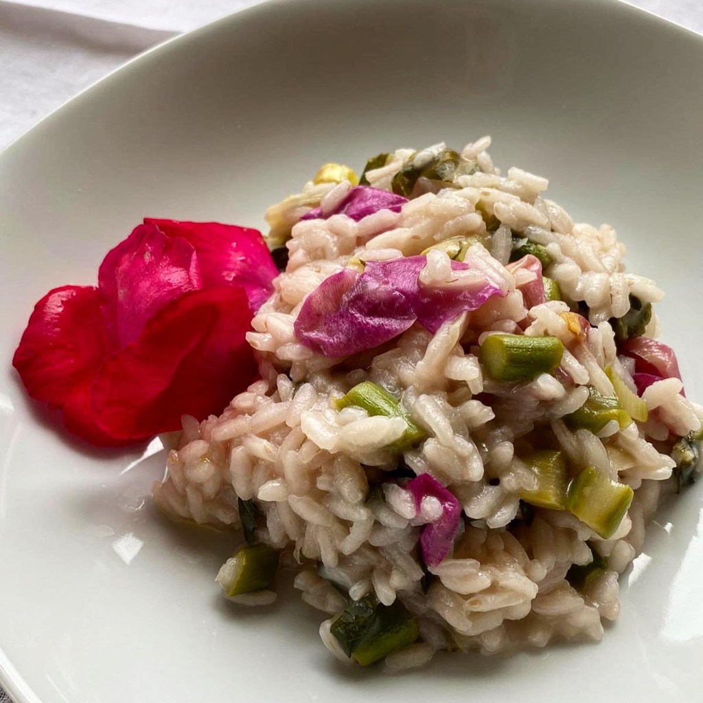 Buona vita, buona festa dell’Ascensione che celebreremo domenica ed anche buon risotto con brodo di petali di rose, asparagi e bietoline ❤️🌷