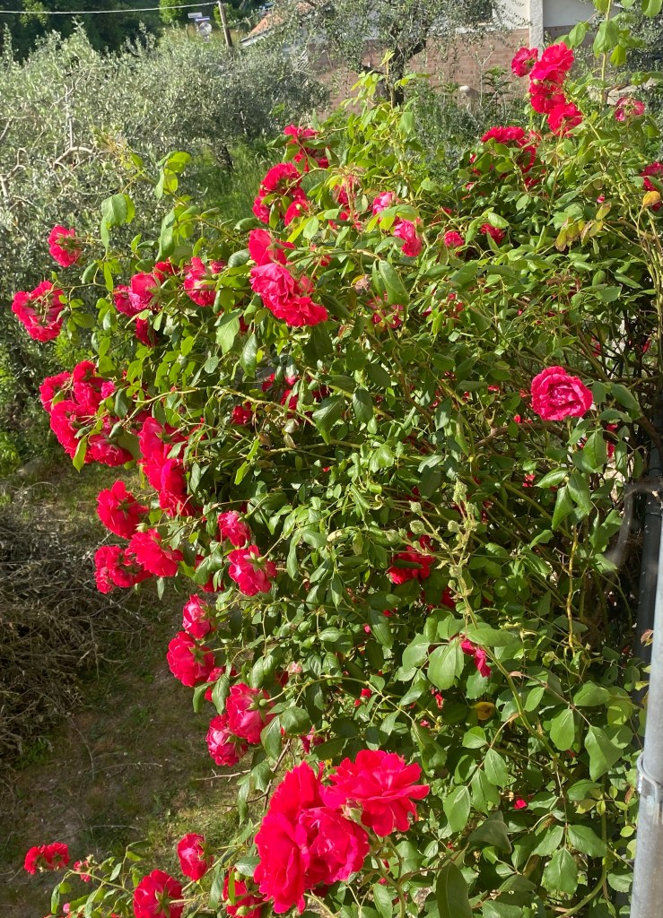 Germogli di asparago nascosti fra i cespugli di rose che rimarrebbero lì se non mi accorgessi che mi pungono mentre cercho sfoltire e di dare luce alla regina dei fiori.