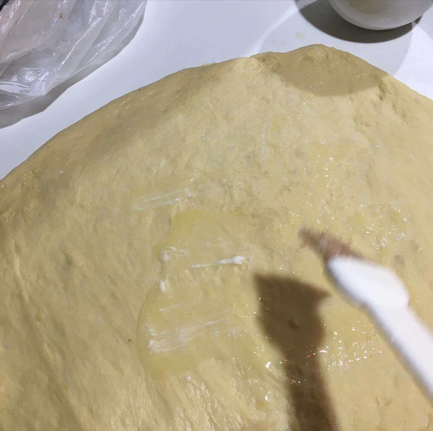 Versiamo il composto sulla lastra foderata coprendo tutta la superficie e mettiamo a cuocere a 200 gradi per 8/10/minuti, toccando la pasta questa deve essere morbida al tatto.