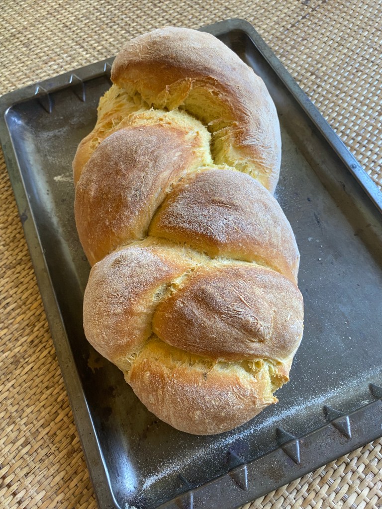 Prima di chiudere l’attività di “fornàra”, ancora una treccia al latte e burro, tanto affonderemo in molti!