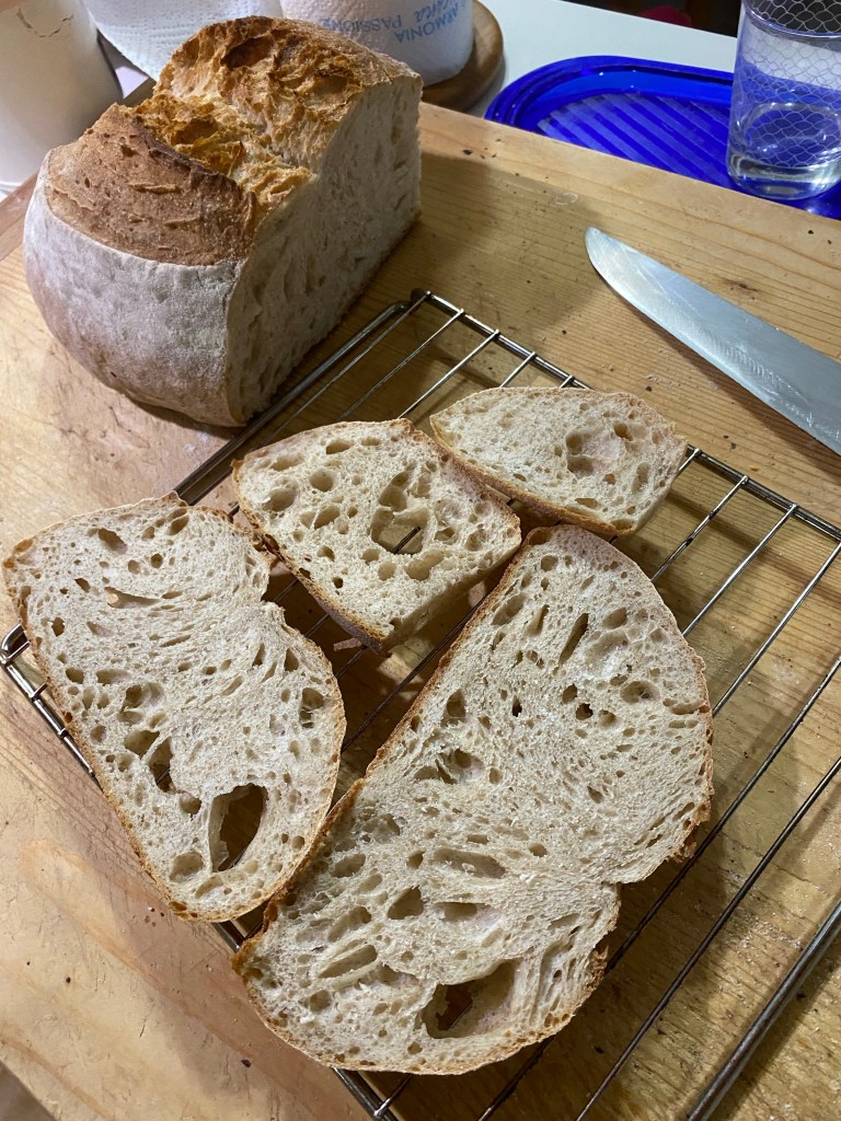 Una sola cosa continuo a fare facendo anche i salti mortali, il pane con il lievito madre, magari a tarda notte lo impasto e lo lascio riposare per tutto il tempo necessario.