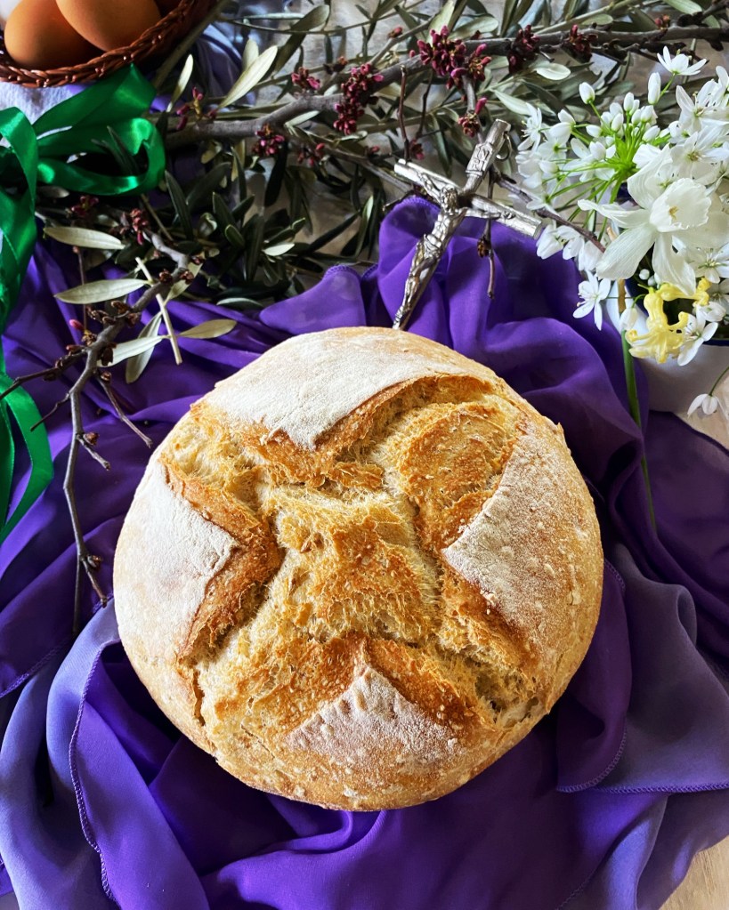 Per la domenica delle Palme sulla nostra tavola è tradizione portare un pane preparato da me con l’olio extravergine d’oliva benedetto, insieme ai rami d’ulivo benedetti alla messa del mattino, per festeggiare l’entrata di Gesù a Gerusalemme.