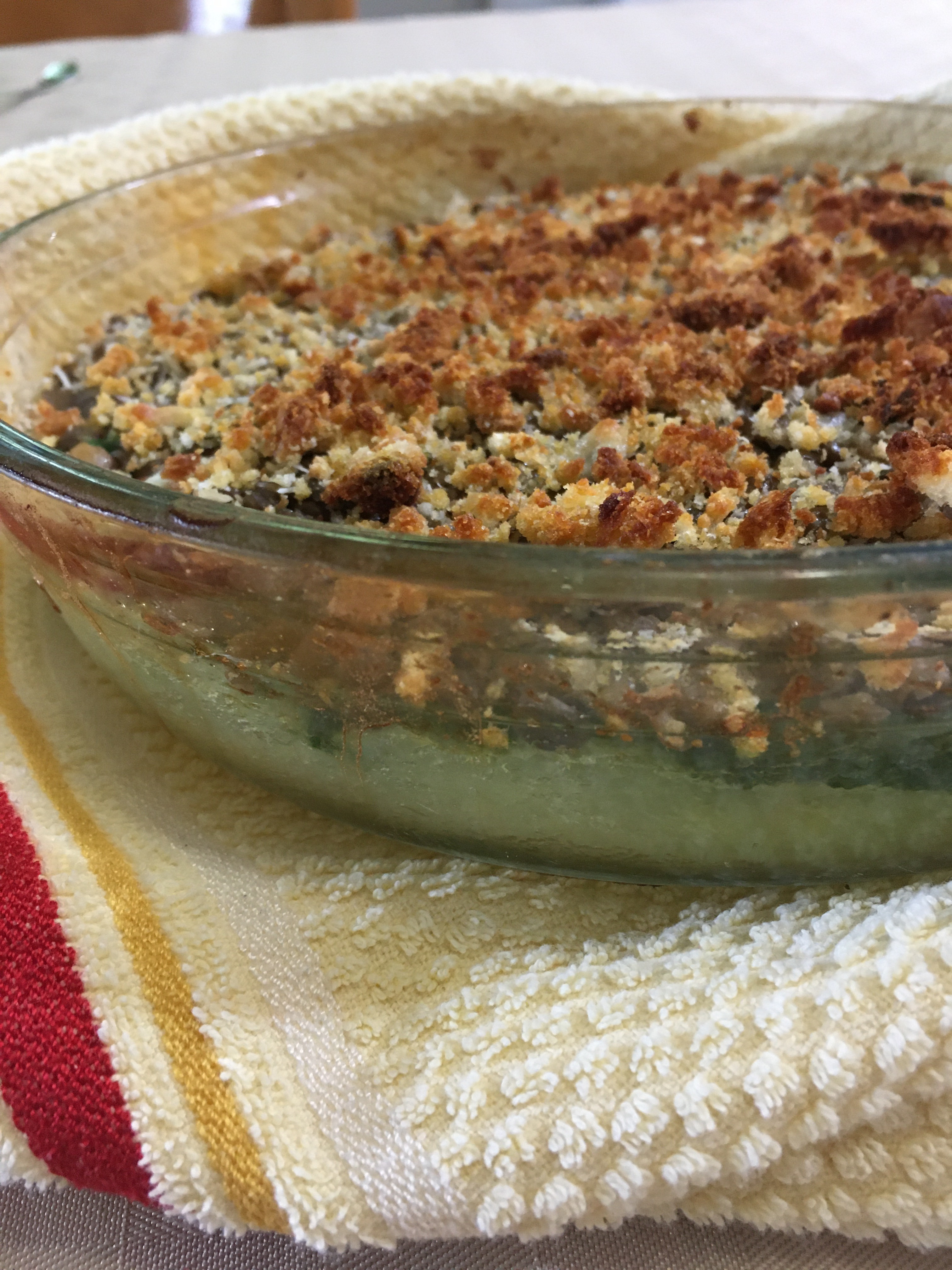 Metto nella pirofila le melanzane sottili sottili, appena passate a microonde, così non pizzicano e restano morbide, metto, l’olio extravergine, una buona spolverata di pane grattugiato aromatizzato con tutti gli odori dell’orto scapigliato, prosciutto cotto, che ve lo dico a fare, prima del Covid, lo guardavo come il diavolo, un altro giro di patate sottili sottili, pane grattugiato, melanzane, prosciutto cotto, pane grattugiato aromatizzato, finisco con le patate e metto in forno. Basta poco tempo perché è tutto sottile. A fine cottura metto le erbe aromatiche con anche la rucola.