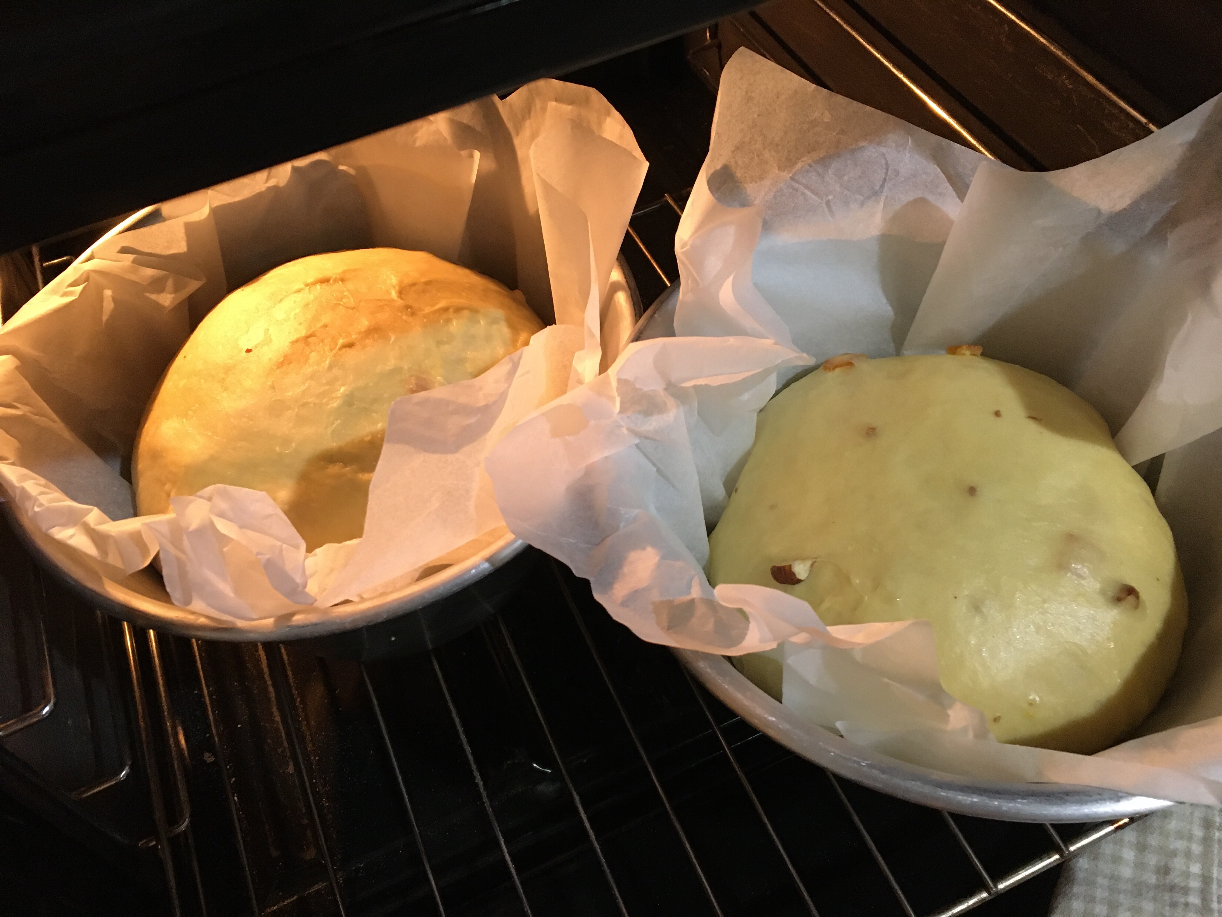 C’è già la ricetta in questo nostro diario o quasi blog, ma ci piace mettere le foto di questi dolci tradizionali pasquali marchigiani che sono le pizze o créscie dolci con nocciole ed arancia candita e con lievito madre.