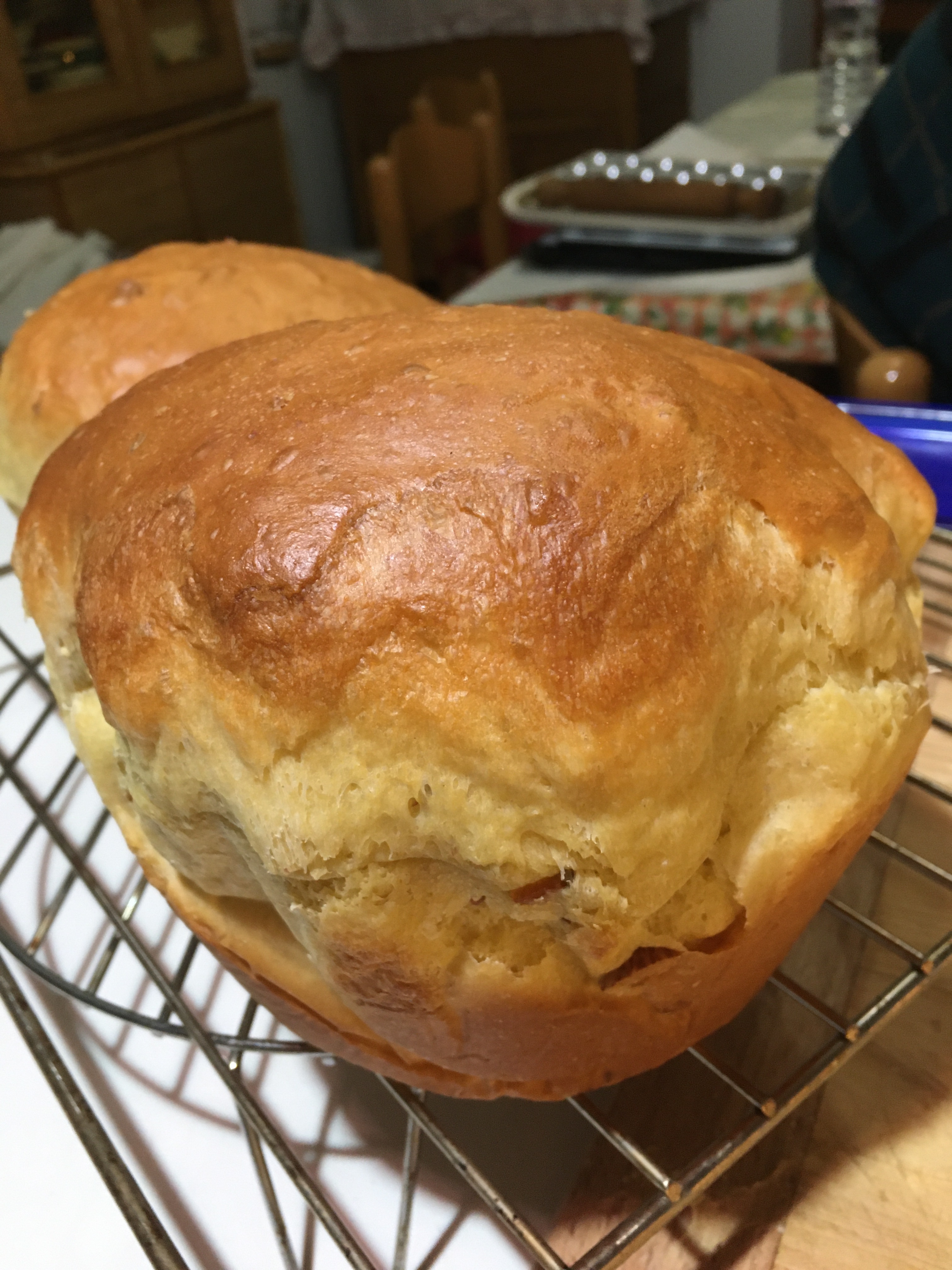 È una grande fatica, c’è da ammetterlo, facciamo tanti rinfreschi ad Assuntino, poi ordiniamo in fila tutti gli ingredienti, la sera prima di andare a dormire, facciamo il primo impasto. La mattina non è ancora triplicato ed aspettiamo pazientemente che ci arrivi, pronto subito il secondo impastiamo ed in fila mettiamo tutto il resto. Lasciamo riposare, niente stampi per panettoni, purtroppo nemmeno quest’anno nei supermercati del nostro piccolo centro, non c’è stata nemmeno l’ombra dei pirottini per poter matterci i nostri lavori! Pazienza, lasciamo che crescano negli stampi da “créscia de Pasqua”, tanto Natale e Pasqua sono tutt’una di festa. Considerazioni finali, i panettoni sono buoni, morbidi e leggeri come una piuma, ma potevano essere più sfogliati. Non interessa più di tanto a noi che di buona volontà ce ne abbiamo messa tanta!