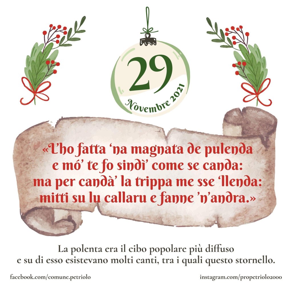 La polenta era il cibo popolare piรน diffuso e su di esso esistevano molti canti, tra i quali questo stornello.