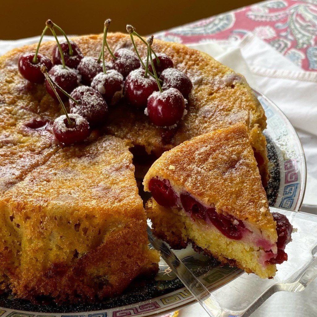 Nel dolce c’erano le ciliegie fresche posizionate sopra la superficie prima di metterlo in forno. Una volta cotta le ciliegie sprofondavano, ma il sapore era ineguagliabile.