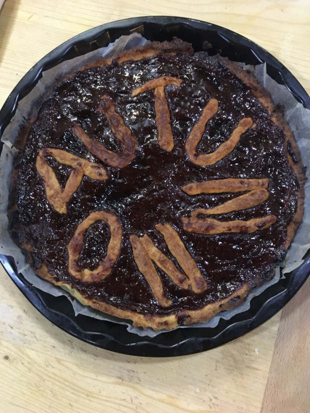Riprendiamo la pasta che stenderemo sopra la carta forno nello spessore di un centimetro, buchiamo la superficie con la forchetta e copriamo con la marmellata scelta. Con la pasta rimasta formiamo la scritta autunno o le strisce classiche. Mettiamo a cuocere a 180 gradi per quasi 30 minuti. Dobbiamo sempre regolarci con il nostro forno.