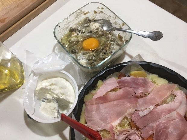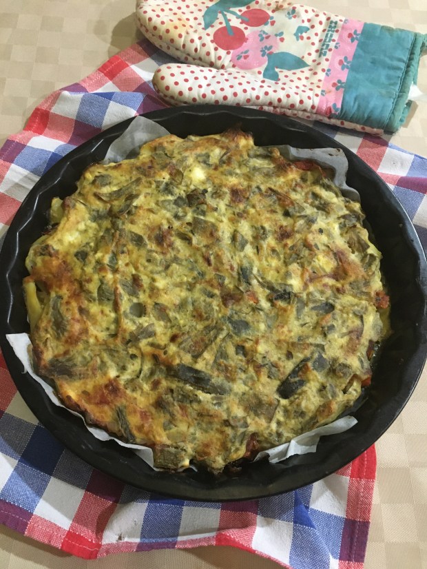 Scacciamo i pensieri colorati, non è poco, ed aspettando la luce ma la Luce vera, facciamo la crostata di carciofi e carote al formaggio emmentaler. Ci servirà per questa sera a cena, non servirà altro perché c’è tutto, verdure, carboidrati e proteine!