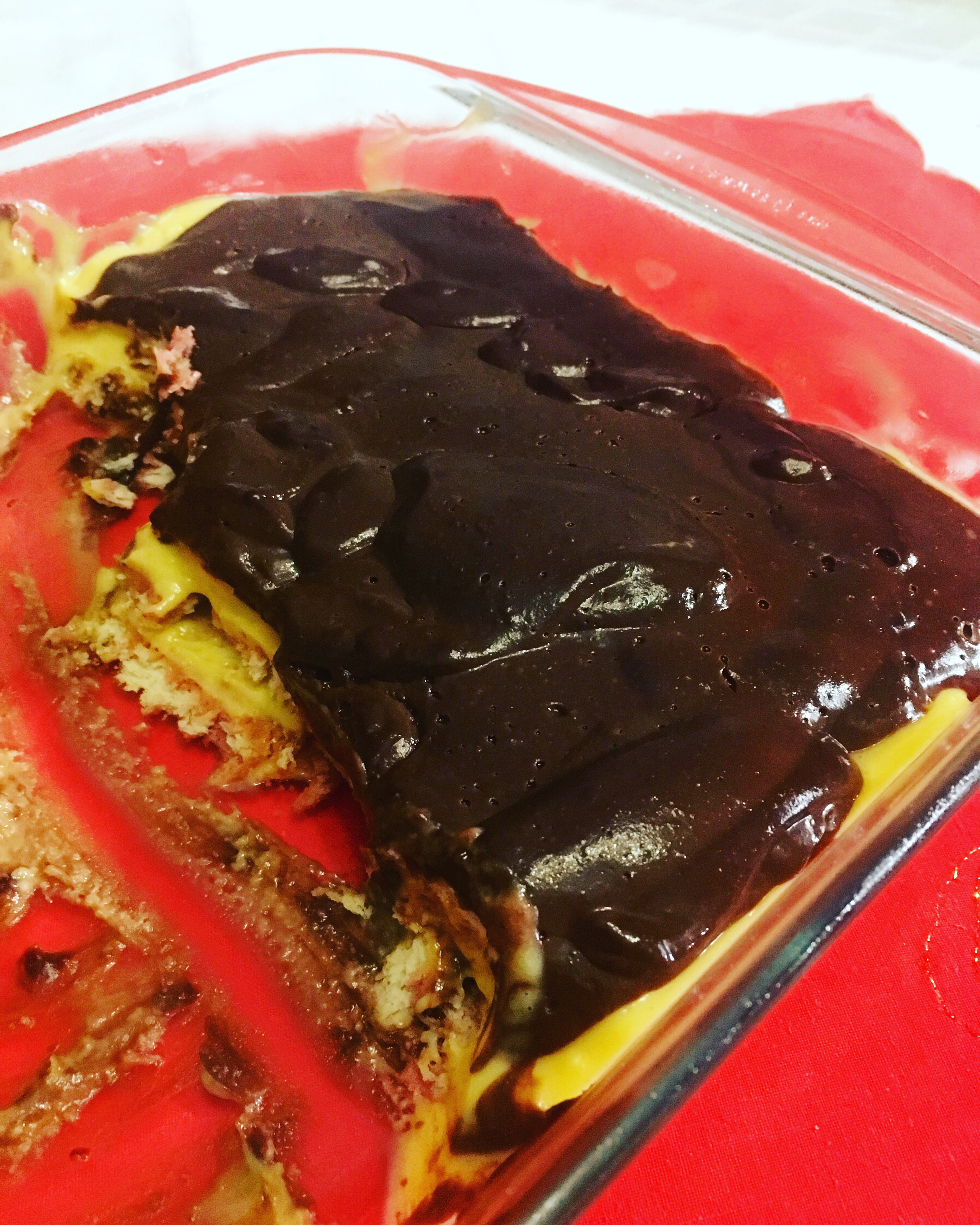 La diversità di quella già scritta è data dalle ciliegie sciroppose che ho fatto l’estate scorsa e dalle nocciole inserite nella crema al cioccolato. Per il resto bisogna lavorare di fantasia. Un particolare che ricordo è la siringa dei dolci, una sac a poche di quegli anni fine cinquanta ed inizio sessanta.