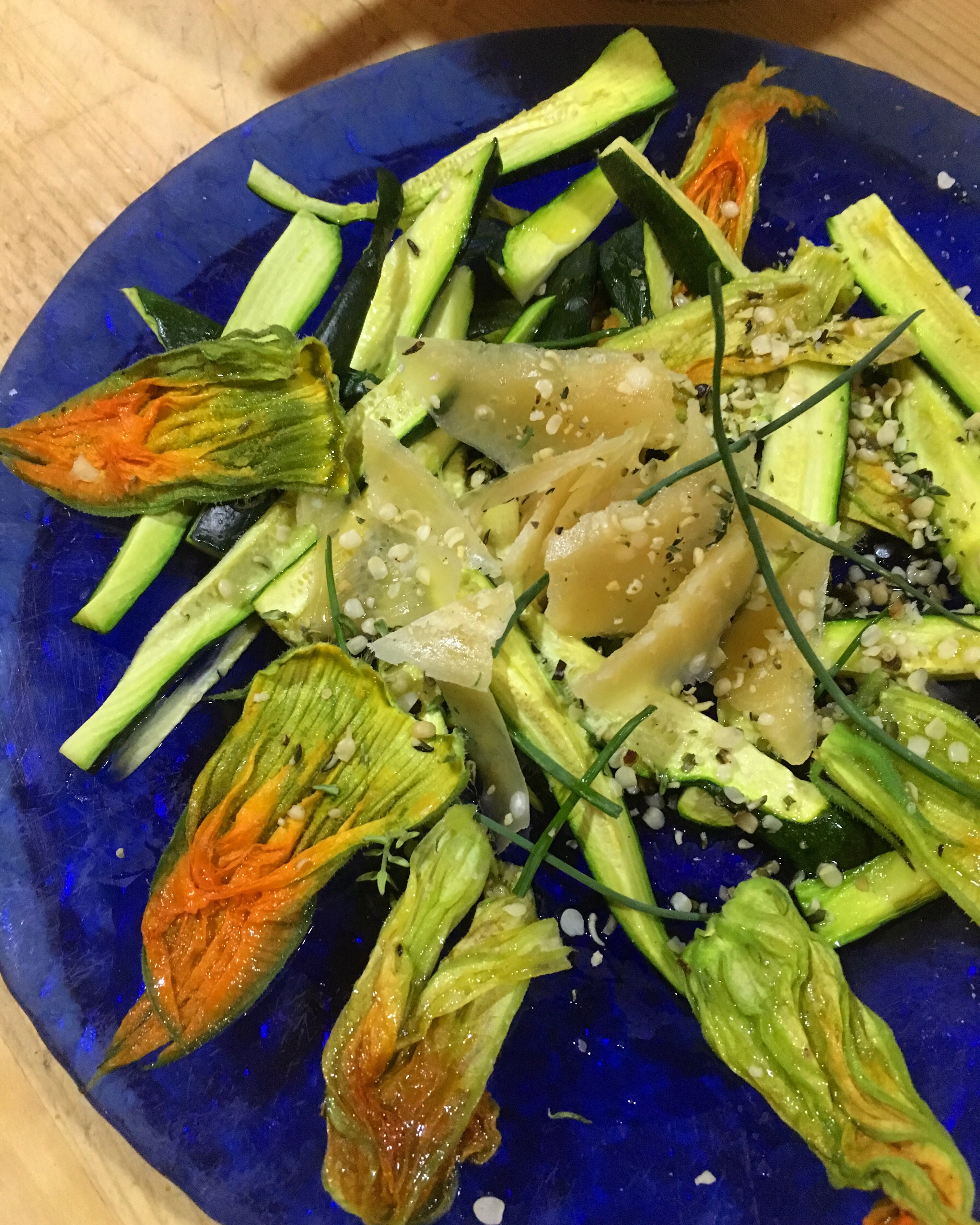 Mescoliamo il formaggio scelto, uniamo le zucchine grigliate a listarelle, poco sale ed il latte quanto ce ne vuole per ottenere una crema abbastanza liquida ed uniamo le erbe aromatiche.