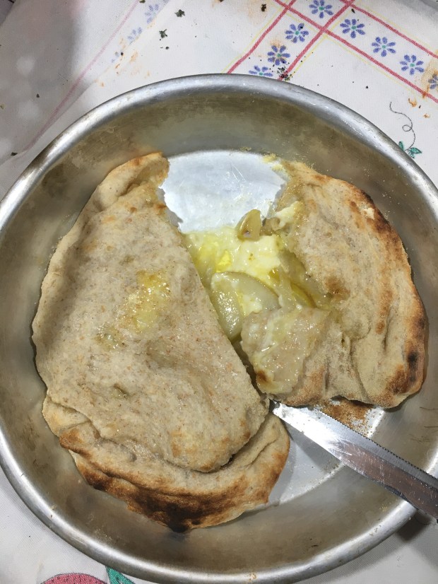Calcione ovvero calzone ripieno con formaggio brie e pere alla cannella