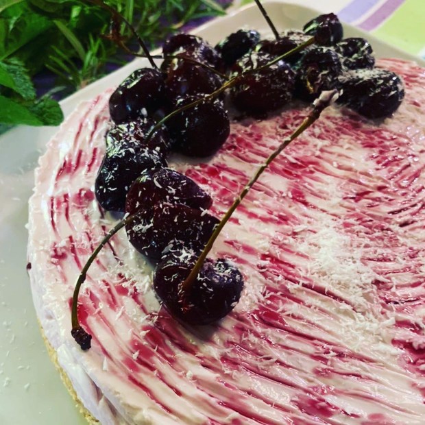 Buona vita, buona cheesecake alle ciliegie sciroppose e cocco e soprattutto auguri a mio figlio Maurizio ❤️❤️❤️