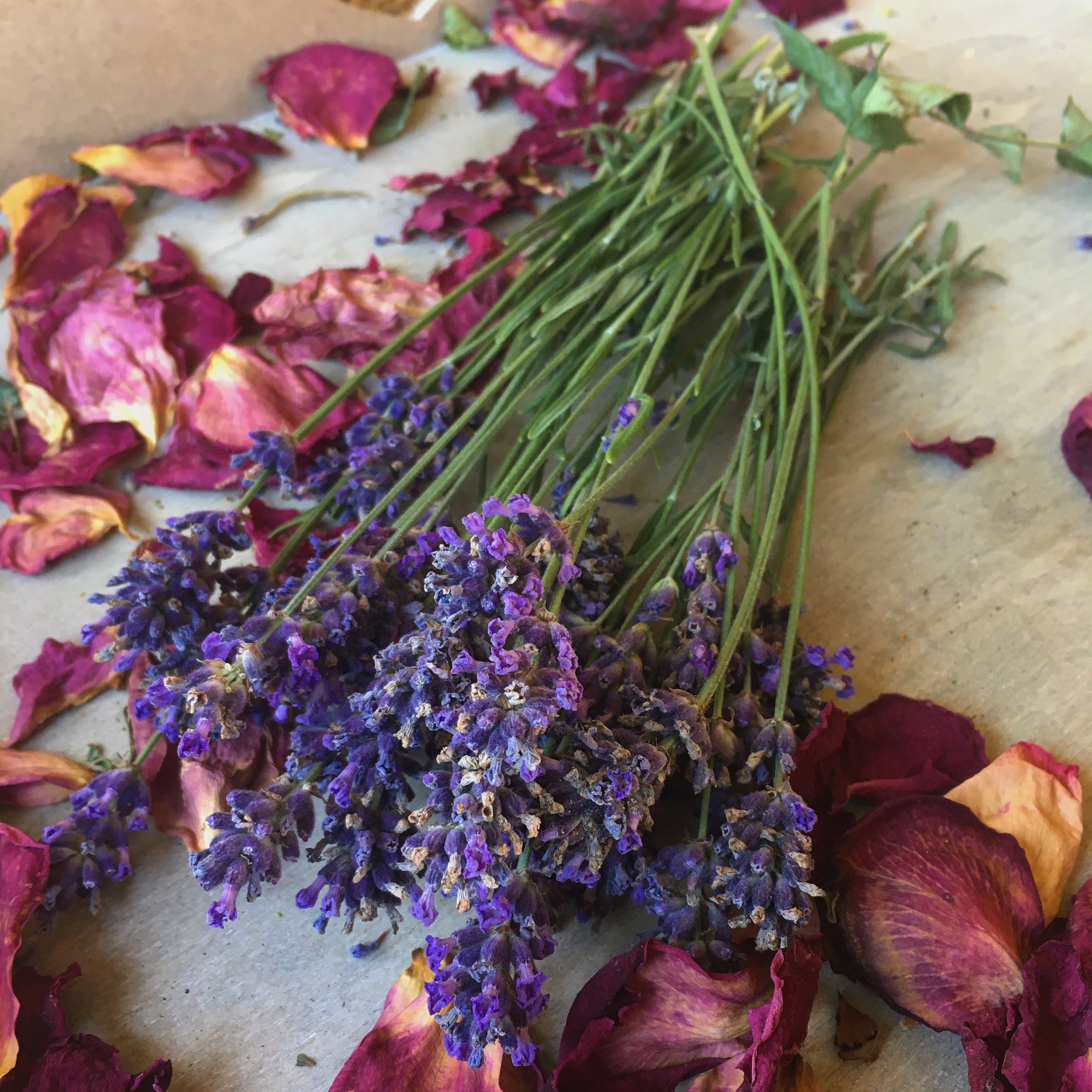 Erbe aromatiche: rosmarino, menta, salvia, erba cedrina, fiori e foglie di lavanda, alloro, timo, maggiorana.