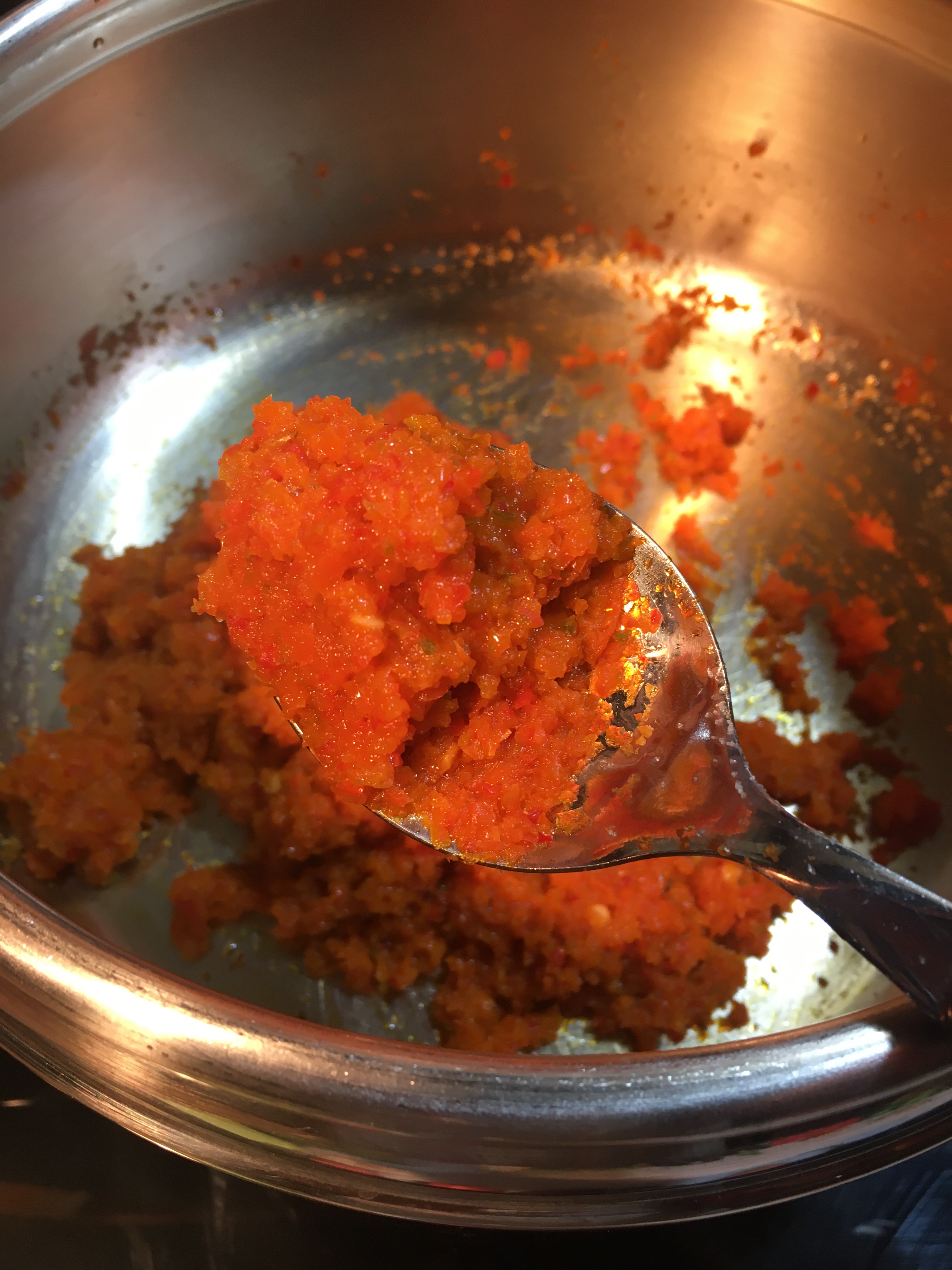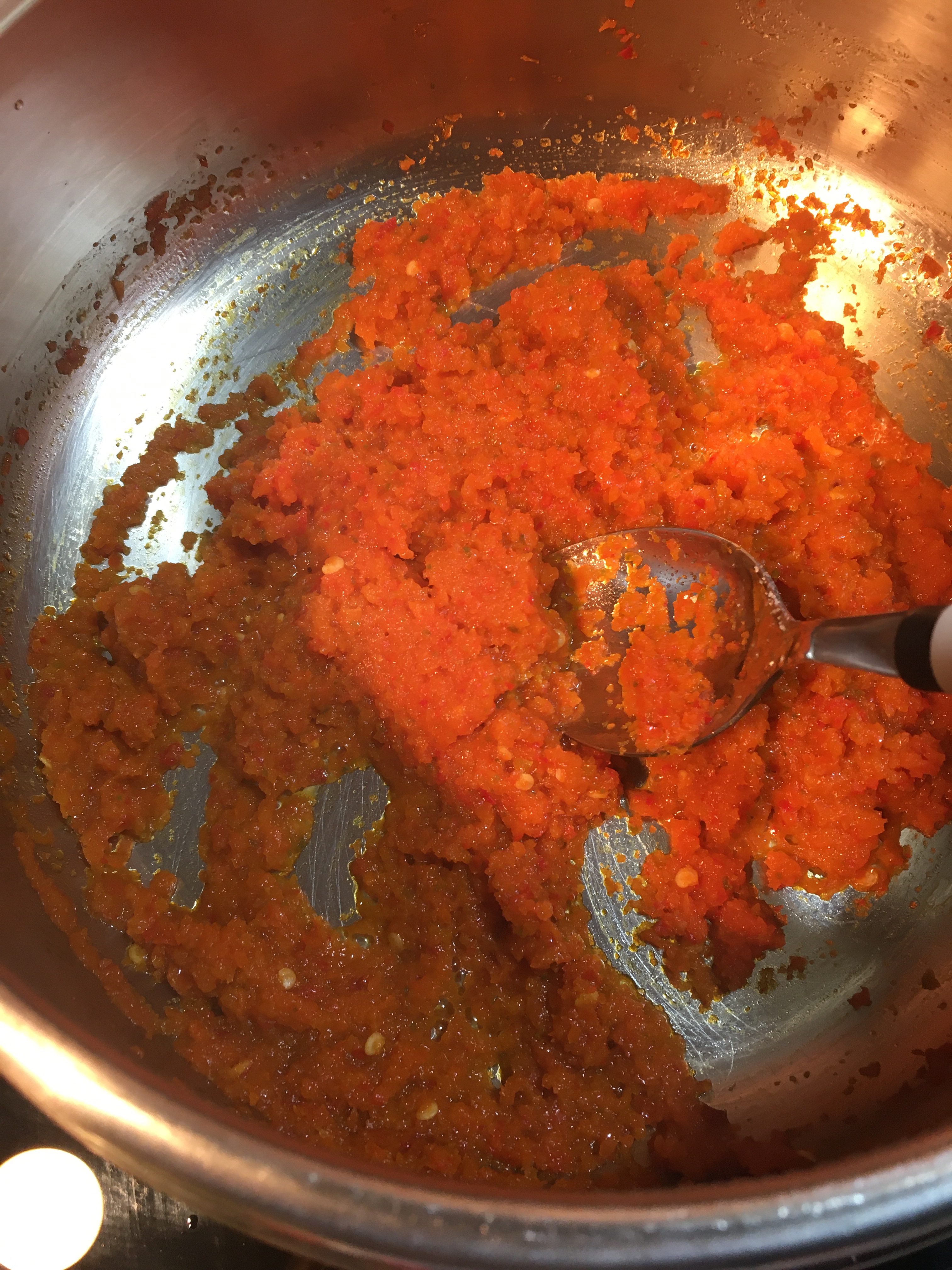 Per poter cuocere questa salsa mi sono dovuta ingegnare, anzi è stato mio figlio che ha preparato una postazione in modo che non si potessero sprigionare l’odore e i vapori dei peperoncini piccanti che avrebbero potuto dare molto ma molto fastidio a chi avrebbe varcato la soglia di casa.