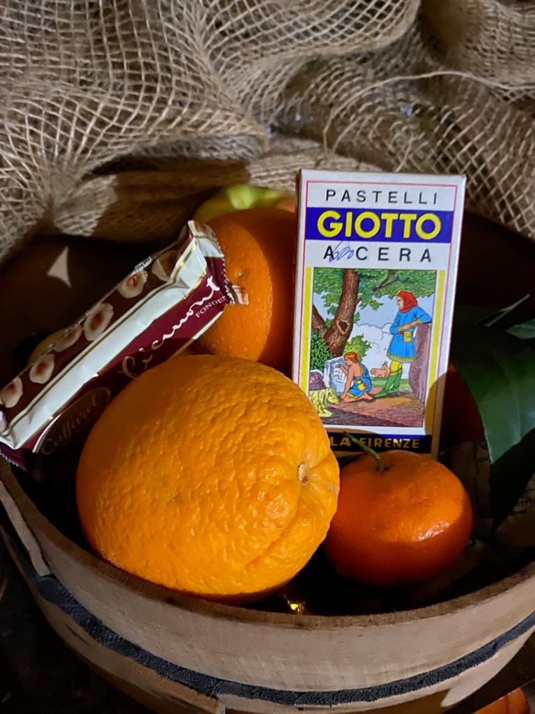 Una volta placata la situazione eccolo qua: apriva il sacco, cercando di farci avvicinare a lui, tirava fuori: mandarini, quaderni, colori e caramelle e sbattendo i piedi con gli scarponi, girava le spalle e risaliva le ripide scale per spogliarsi degli stracci di vecchjò!