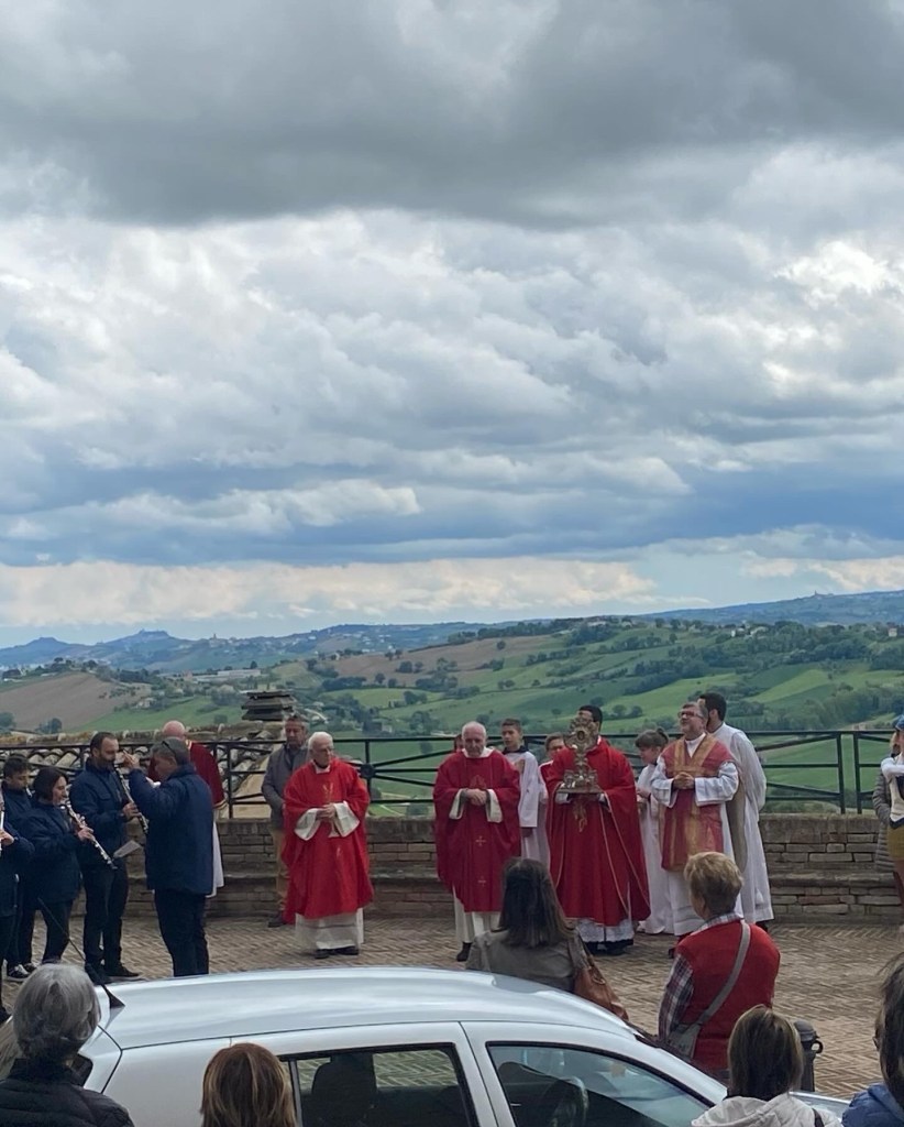 OGGI POMERIGGIO LA MADONNA DELLA MISERICORDIA FINALMENTE HA VARCATO LE PORTE DEL SANTUARIO A LEI DEDICATO CHE SI TROVA A PETRIOLO IN PROVINCIA DI MACERATA MARCHE