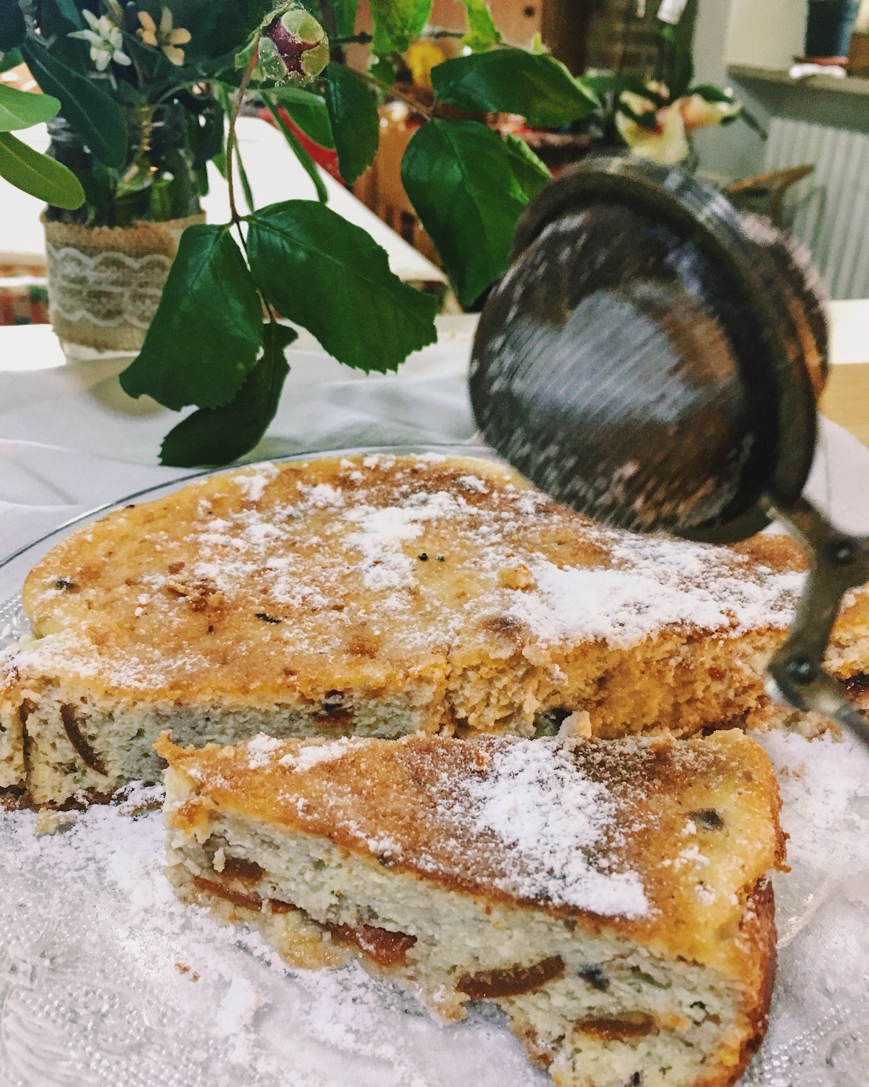 Torta di ricotta e yogurt bianco con frutta secca e albicocche al profumo di cannella