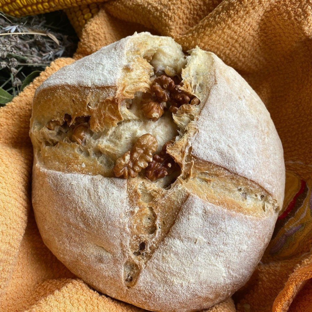 Io so’ settembre; so’ molto cortese, a li villani io faccio le spese; porto l’ùa, li fichi, le mele e co’ ‘sti frutti je faccio piacere. Salvia, majorana, trosmarino trapiantali a settembre e al tuo vicino. È tempo di bacchiar le noci e la tradizione vuole che si faccia verso il 14 di questo mese data della festa dell’esaltazione della Croce. Santa Croce la pertica per la noce. E allora “lo pà nociato” con le noci appena raccolte e il pecorino, “lo pannociato” dolce, i biscotti di mosto fresco e semi di anici sono pronti! Per fare il pà nociato basta prendere la massa di pane ed aggiungere noci fresche e pecorino. Formare il filoncino è una volta lievitato cuocere come un pane. Per il pannociato dolce, si lavorano uova, burro, zucchero, caffè, cacao, vaniglia, uvette, noci, rum, cognac, alchermes, limone e farina quanta ne serve per formare un filoncino e cuocere a 180.