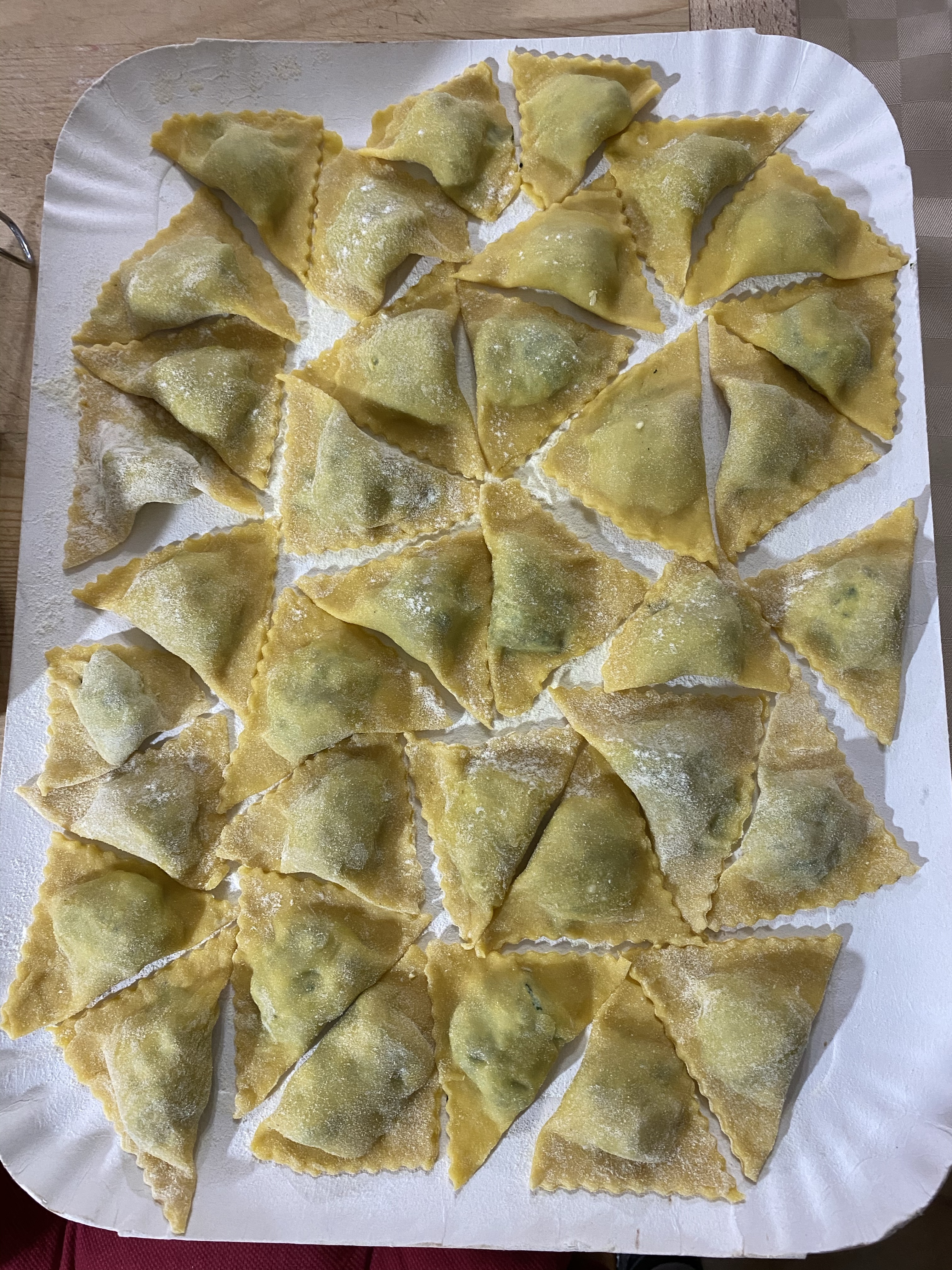 Per prima il pane che ci vuole tanto tempo per farlo lievitare anche se con questo caldo fa più in fretta, lo yogurt bianco greco, sette o otto ore per averlo pronto, il rollè di pollo ripieno di molte cose, la base per la torta che vi racconto fra poco, finito di cuocere il sugo che avevo fatto rosolare ieri sera, le tagliatelle.