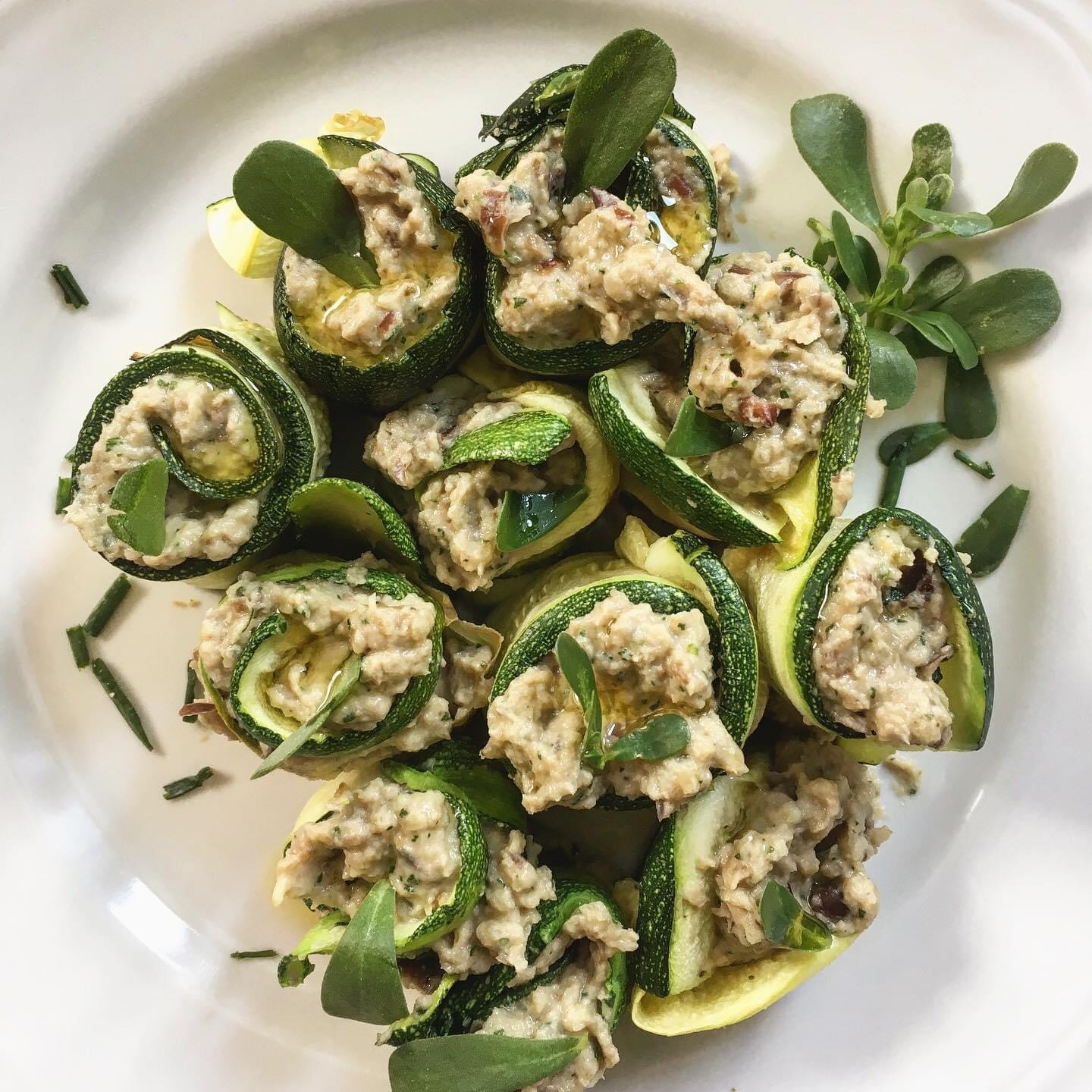 Rotolini di zucchine con portulaca tonno e melanzane
