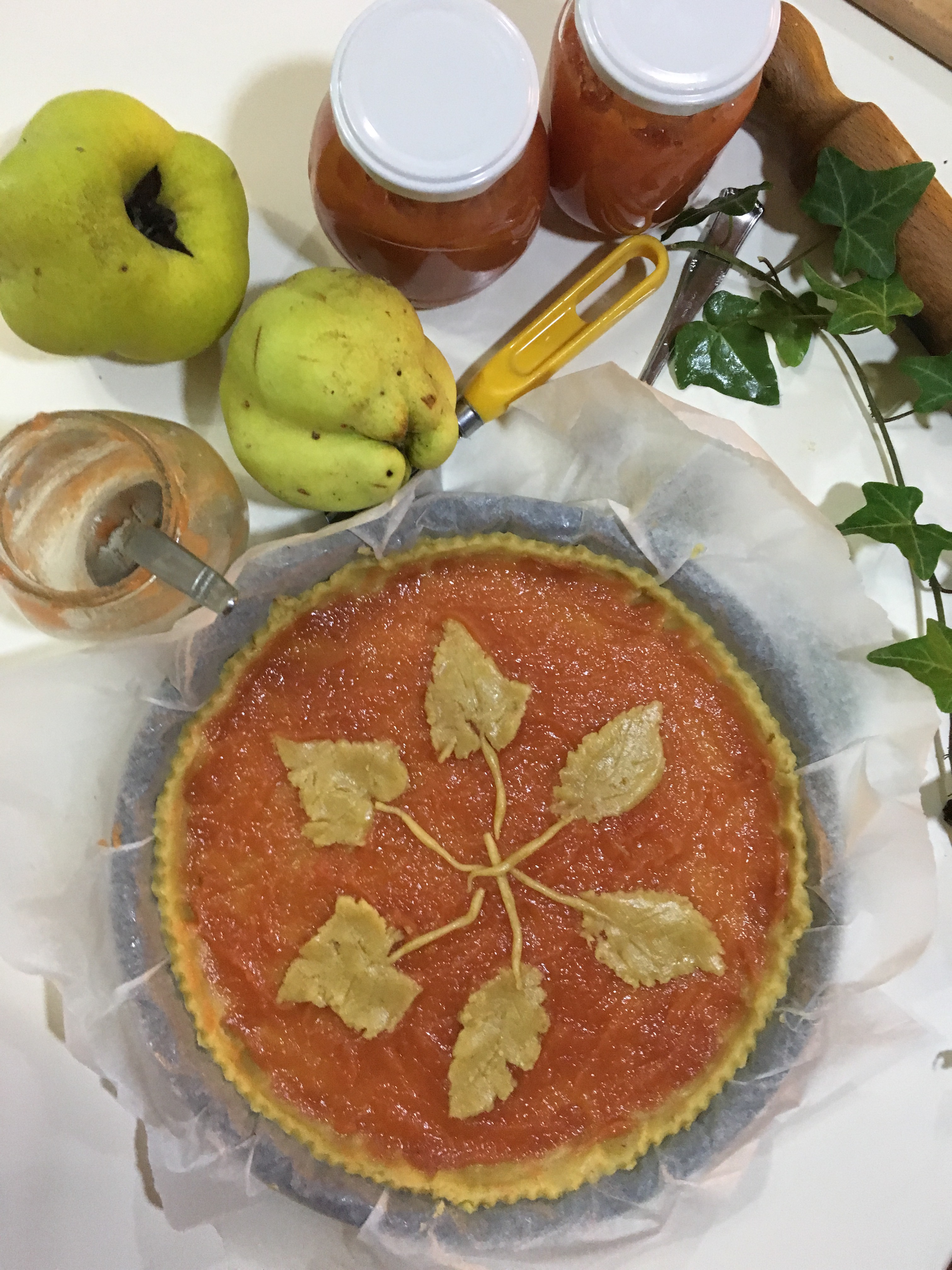 Crostata con farina integrale e marmellata di mele cotogne alla vaniglia