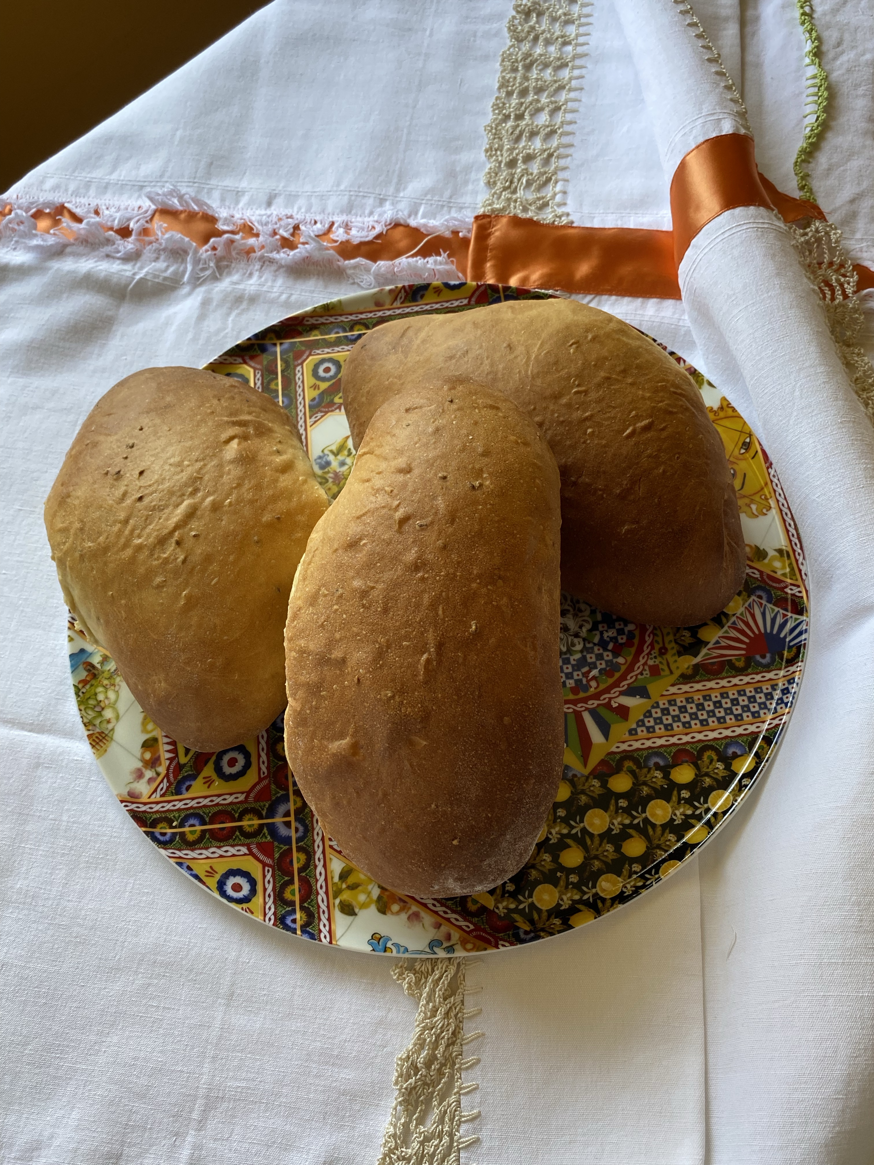 Prima di tutto si mette a scaldare in una tazza il mosto fresco con due o tre cucchiai di anici, nel frattempo si prepara il lievitino con 250 gr di farina 0, 150 gr di zucchero e due bustine di lievito secco di birra o un cubetto fresco, si mescola con il mosto tanto quanto basta ad ottenere una pastella. Si lascia riposare fino a quando la superficie è piena di bolle. Nella ciotola della planetaria, o a mano, si mettono la restante farina 0, 150 gr di zucchero, il lievitino, si comincia ad impastare aggiungendo il mosto con gli anici riscaldato prima, quanto ne serve per avere un composto morbido e non troppo appiccicoso. Unire poco alla volta 70 gr di olio extravergine d’oliva, lavorare fino a completo assortimento. Lasciare lievitare fino al raddoppio. Riprendere la pasta, sgonfiarla un po’ e tagliare in tre parti, ora qui si possono aggiungere uvetta, noci e fichi a pezzetti oppure nulla. Formare tre filoni e mettere a lievitare sopra la lastra del forno con carta forno, lasciando una piega di carta fra un filoncino e l’altro per non farli attaccare. Una volta lievitati cuocere a 160 gr per circa un’ora. Lasciare che si freddino e gustare con il vino cotto o la cioccolata calda oppure il giorno dopo, tagliare i filoni a fette e mettere a tostare in forno per ottenere i biscotti.