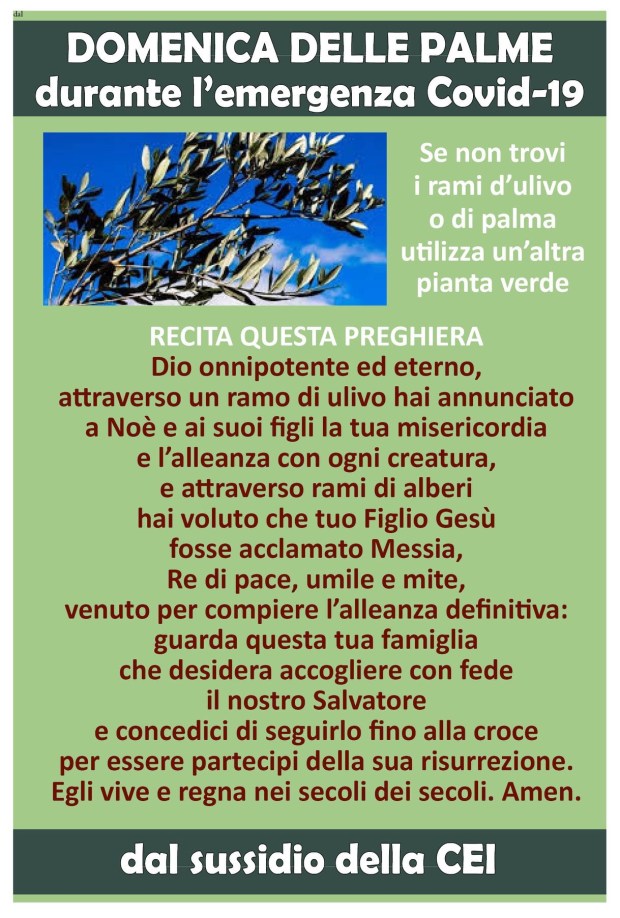 Quest’anno niente triduo pasquale per nessuno e nemmeno sembra Pasqua, tutto il mondo è immerso in un velo pietoso e doloroso. Stasera giovedì Santo, possiamo fare la lavanda dei piedi in famiglia. Ognuno all’altro superando le avversità che non mancano mai. E poi perché non preparare un presepe di Pasqua? Un crocifisso, rametti di ulivo ed una corona benedetta a rappresentare Maria nel dolore di tutti.