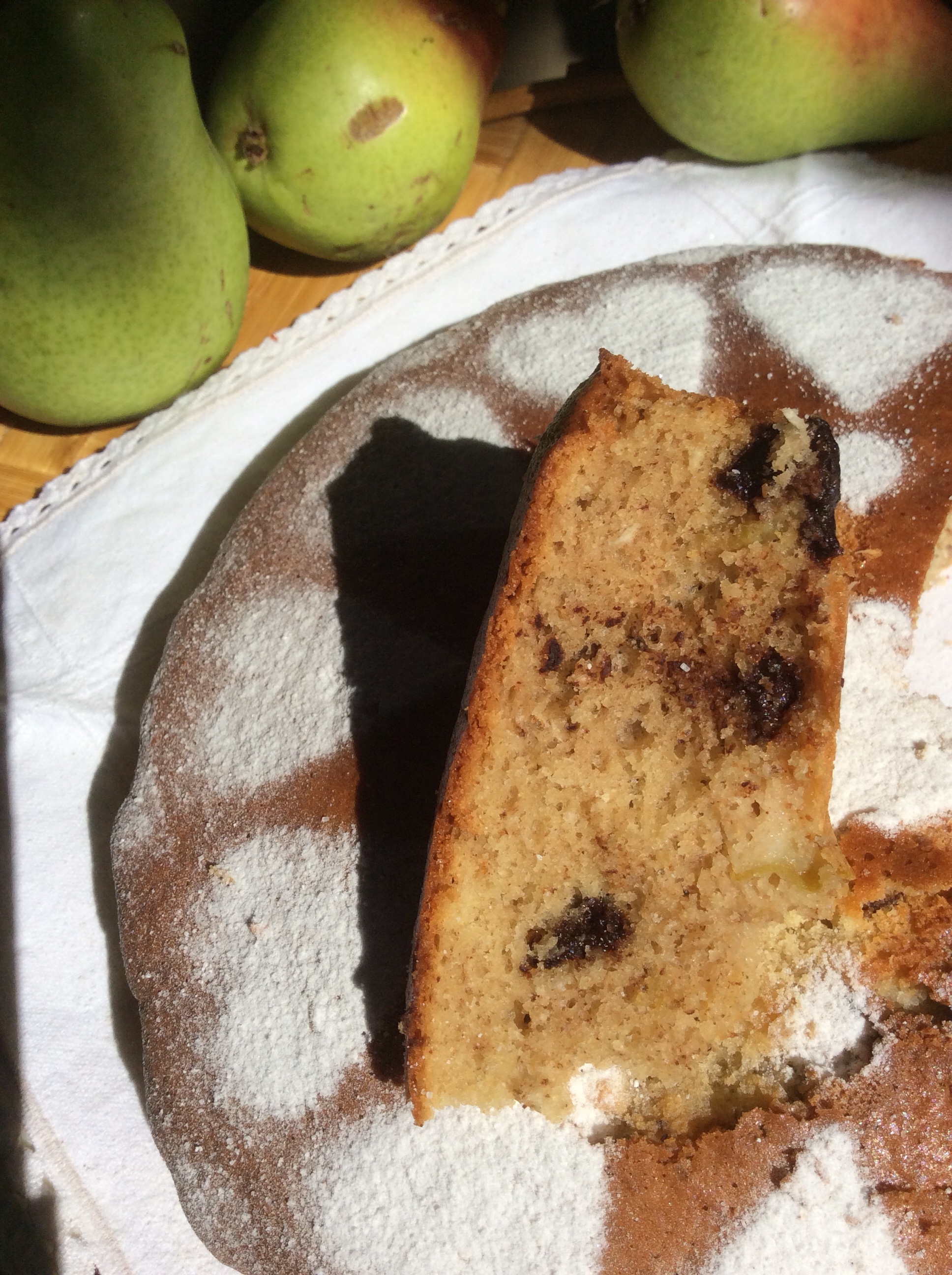 Torta di pere e fave tostate di cacao al profumo indiano del cardamomo