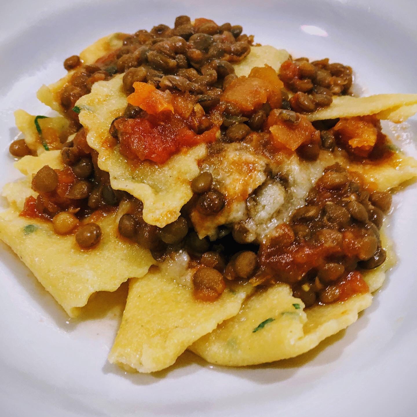 Buona vita, buoni maltagliati di farina di mais ed erbe aromatiche con sugo di lenticchie ❤️