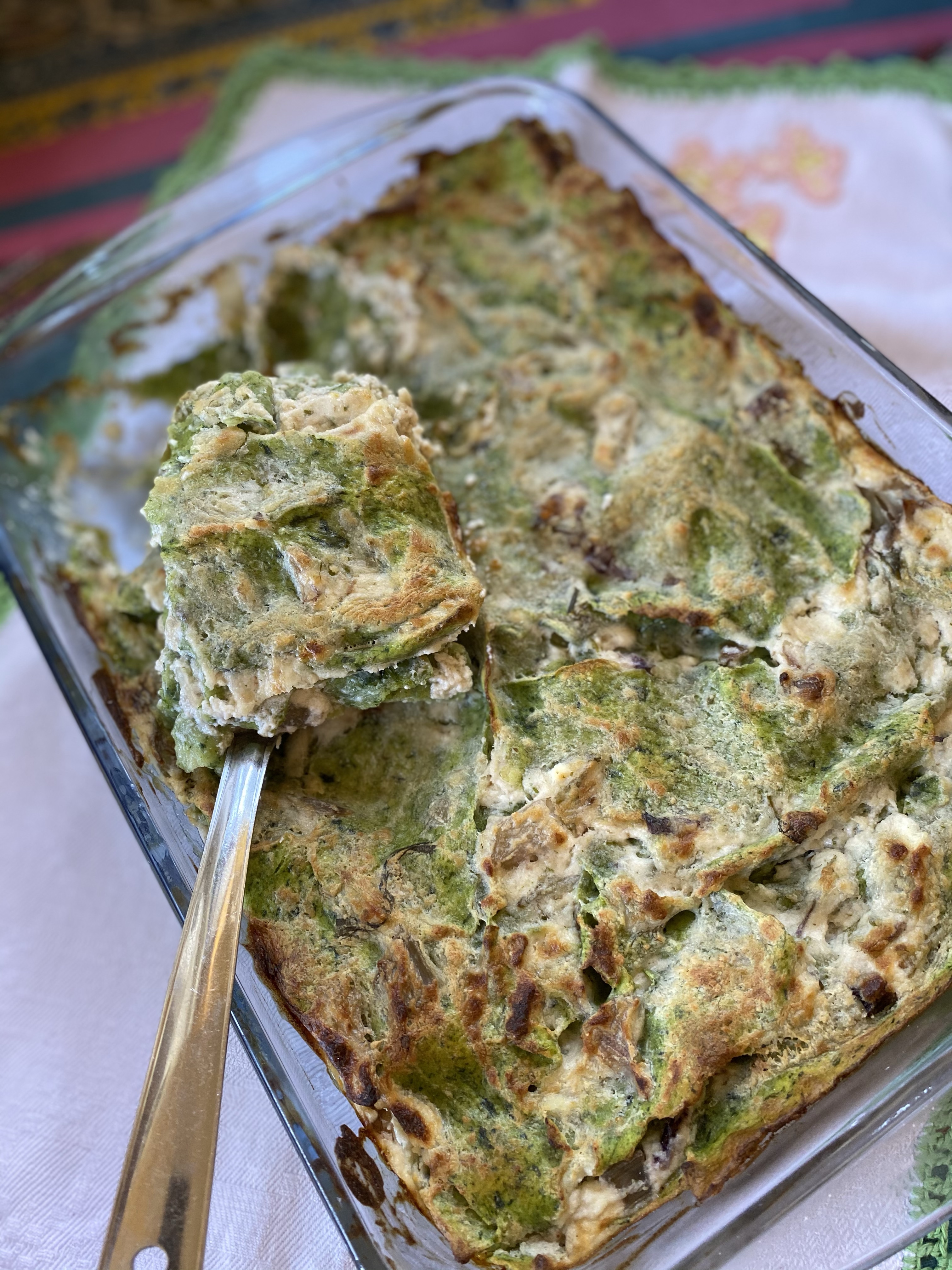 Versiamo il composto sulla lastra foderata coprendo tutta la superficie e mettiamo a cuocere a 200 gradi per 8/10/minuti, toccando la pasta questa deve essere morbida al tatto.