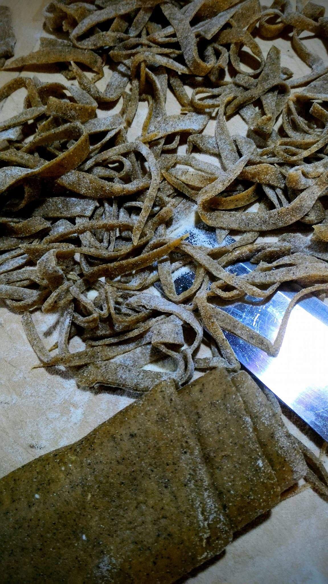 Allora facciamo le tagliatelle diverse, nere come i nostri pensieri ma buone come vorremmo che siano le giornate attuali.