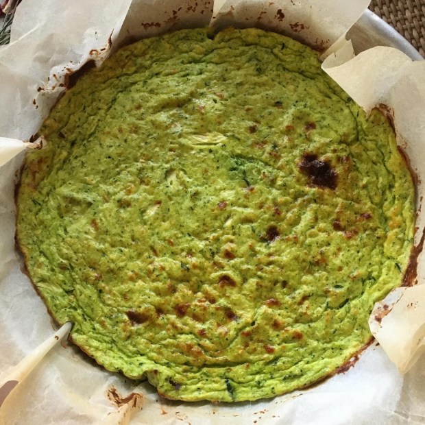 Frullo con il robot le tre zucchine, le metto nello scola insalata con un pizzico di sale a perdere l’acqua di vegetazione, così resteranno più asciutte. Le lascio così per un’ora, le metto in una ciotola, aggiungo tre uova di galline felici, noce moscata, buccia di limone, erbe aromatiche, timo, maggiorana ed erba cipollina, poco sale, parmigiano reggiano, sbatto con la forchetta, unisco 300 grammi di ricotta scolata per bene, un cucchiaino di lievito per torte salate, pizzaiolo, manco metto l’olio extravergine di oliva perché non c’è bisogno, verso tutto in uno stampo foderato di carta forno di 20 /22 centimetri e metto a cuocere in forno a 170 gradi per una mezz’ora più o meno.