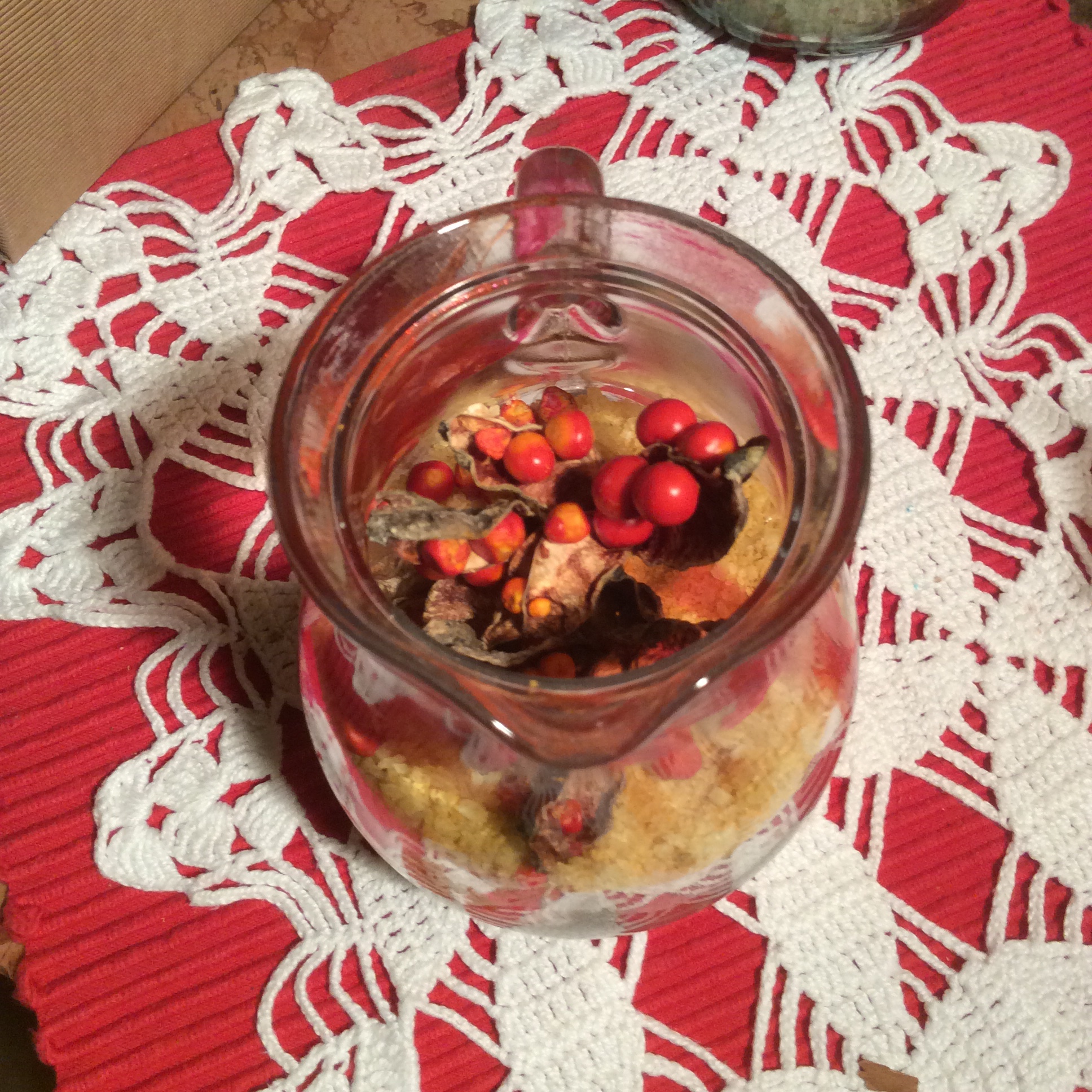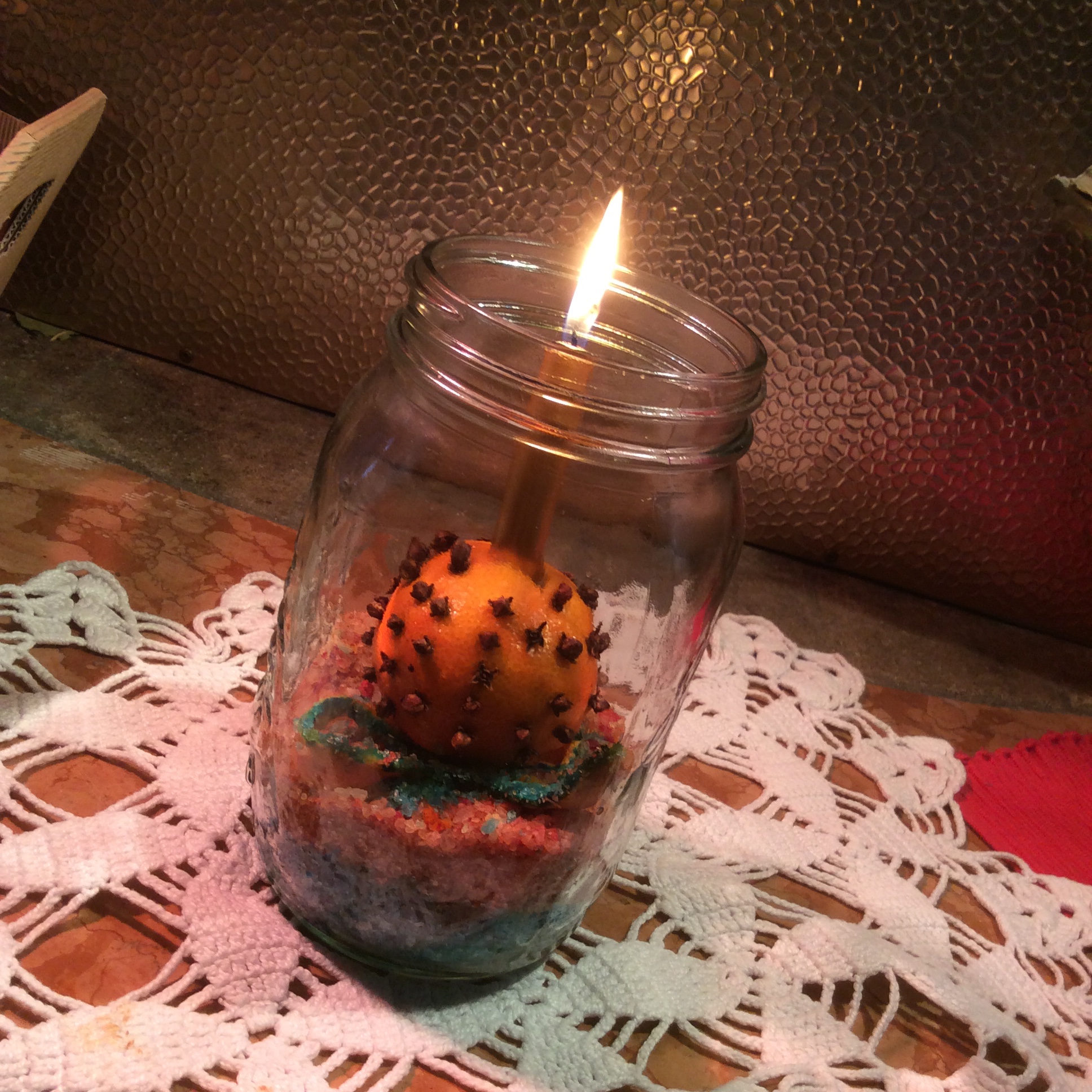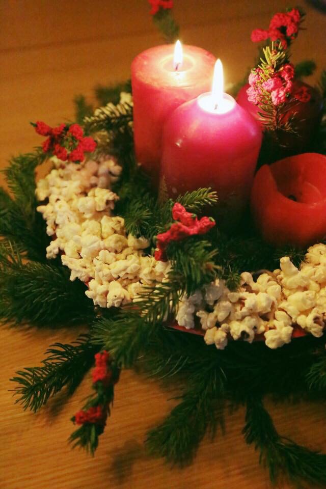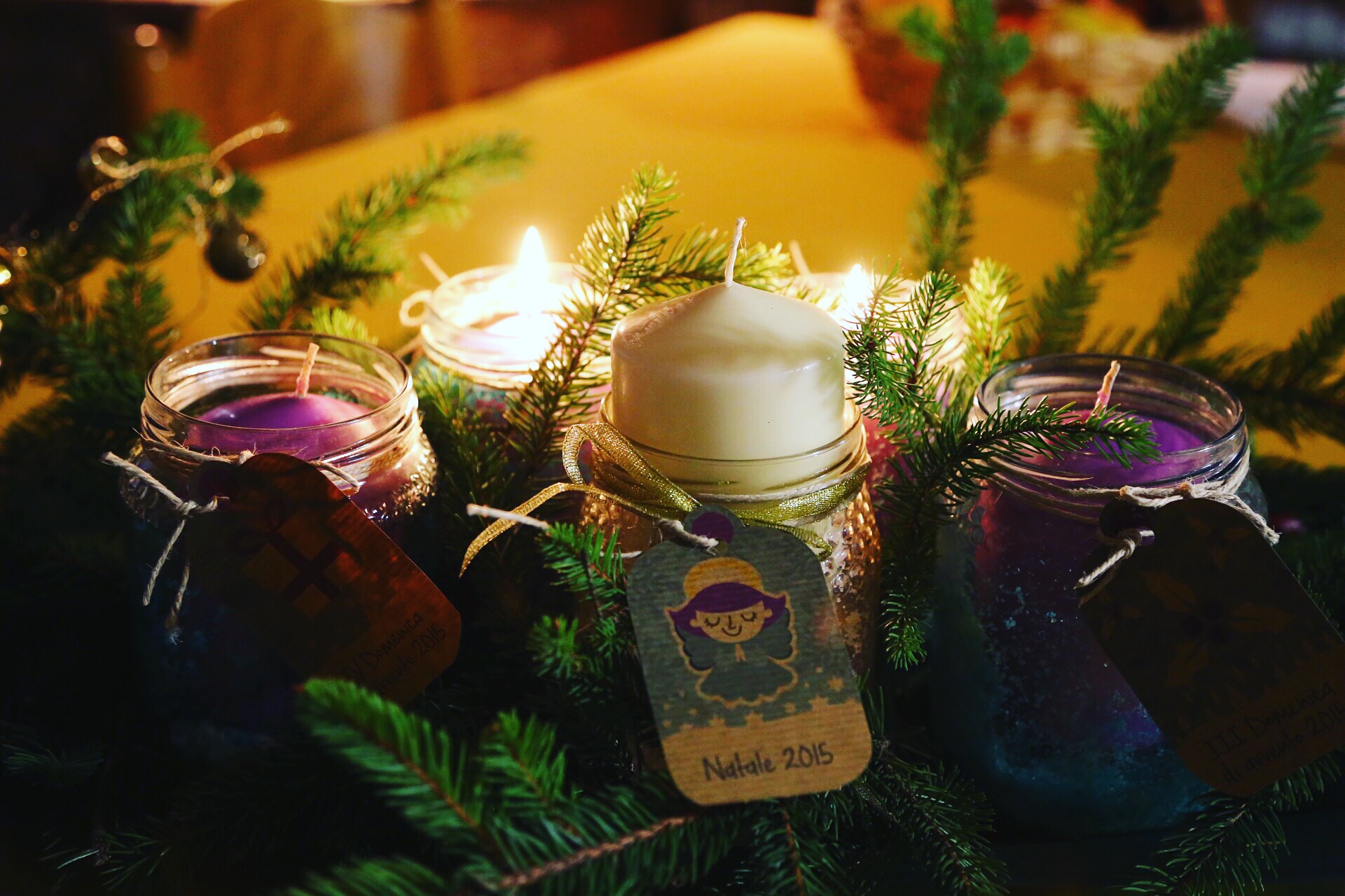 I rami li sistemo sopra la tovaglia, prendo due piccole bottiglie, infilo dentro le lucine ed i rametti, lego il resto e poi?